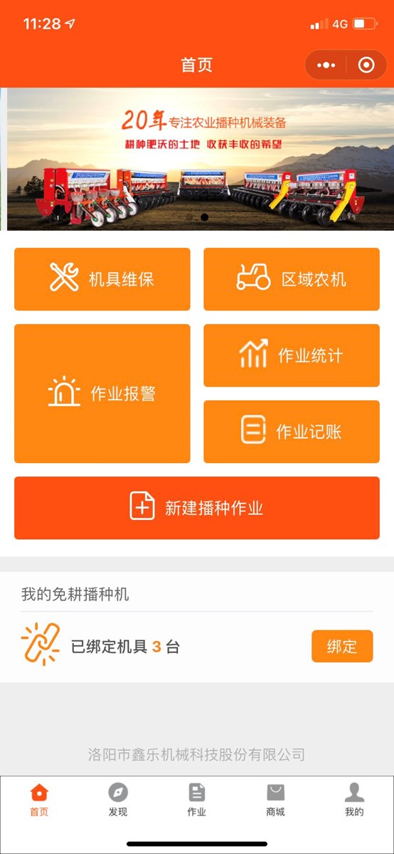 - 首頁:為登錄用戶提供創(chuàng)建作業(yè)、機(jī)具維保、區(qū)域農(nóng)機(jī)、作業(yè)報(bào)警、作業(yè)統(tǒng)計(jì)及作業(yè)記賬等重點(diǎn)功能的快捷入口。