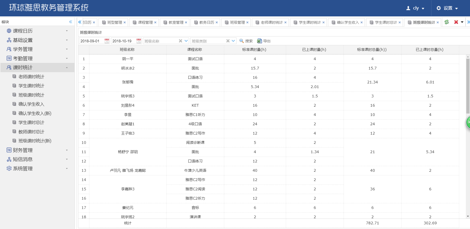 • 課時統(tǒng)計:老師課時統(tǒng)計、學生課時統(tǒng)計、班級課時統(tǒng)計