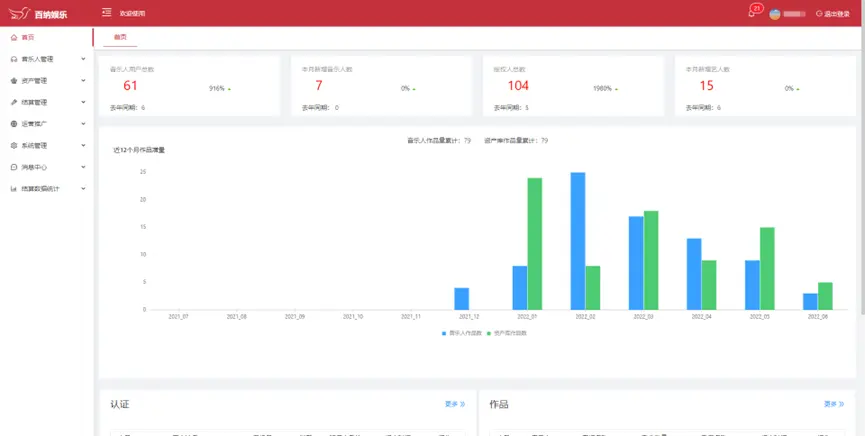 音樂(lè)人管理:注冊(cè)認(rèn)證、認(rèn)證審核、作品上傳、作品審核、授權(quán)簽約、藝人結(jié)算